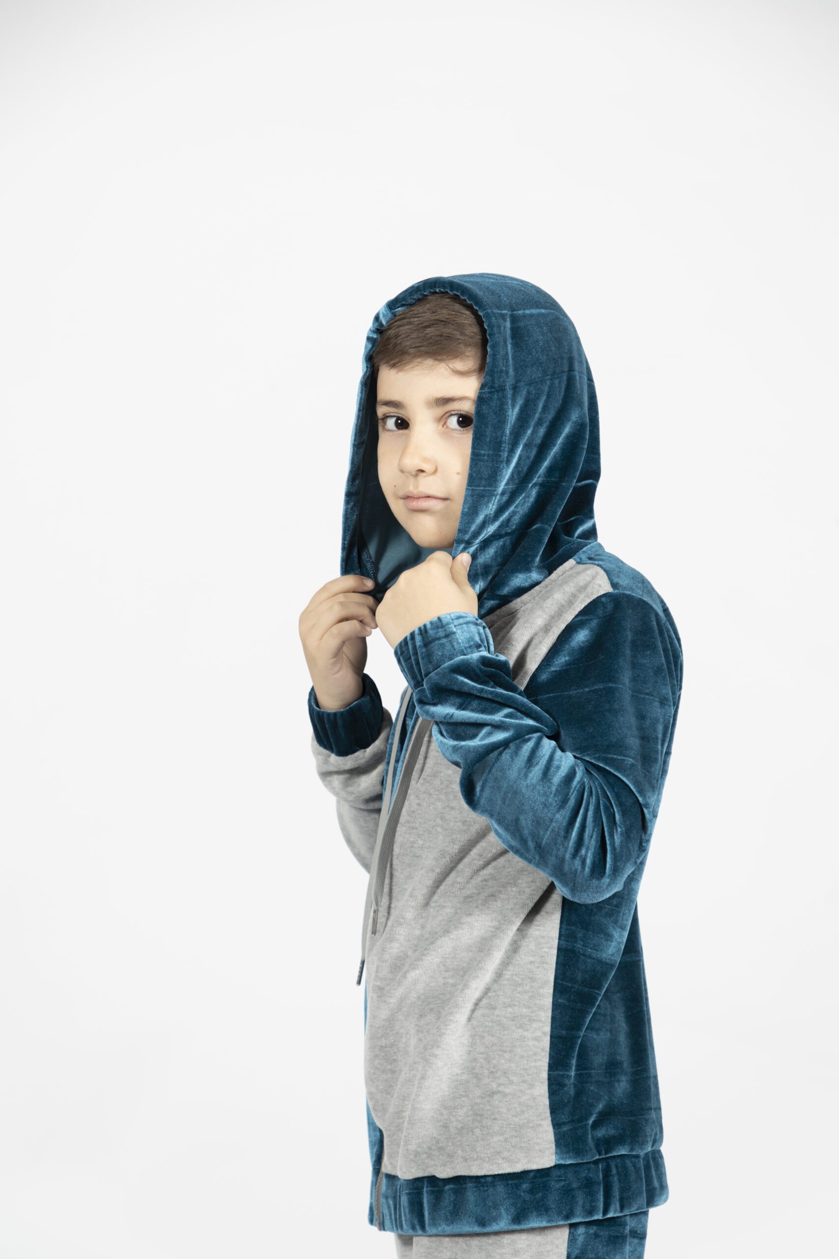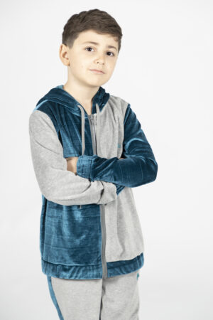 A cozy, warm kids’ jacket made from soft all-velour fabric. Featuring a three-color design, it feels gentle on the skin while keeping your child comfortable all day.