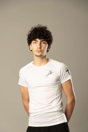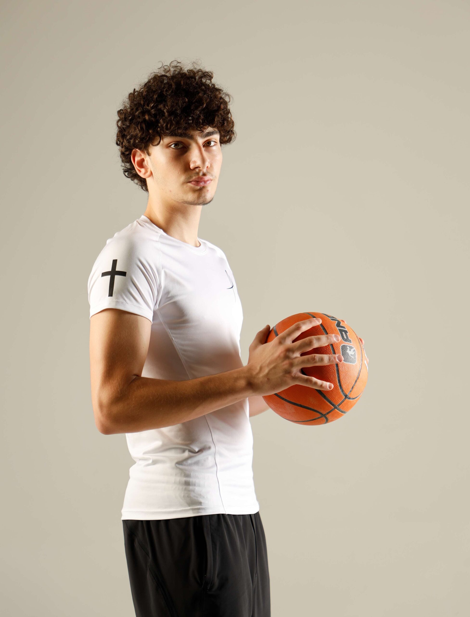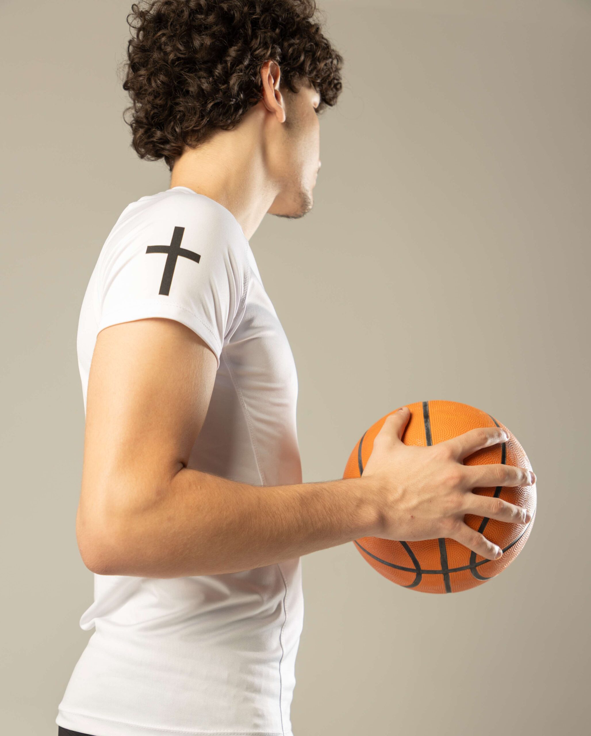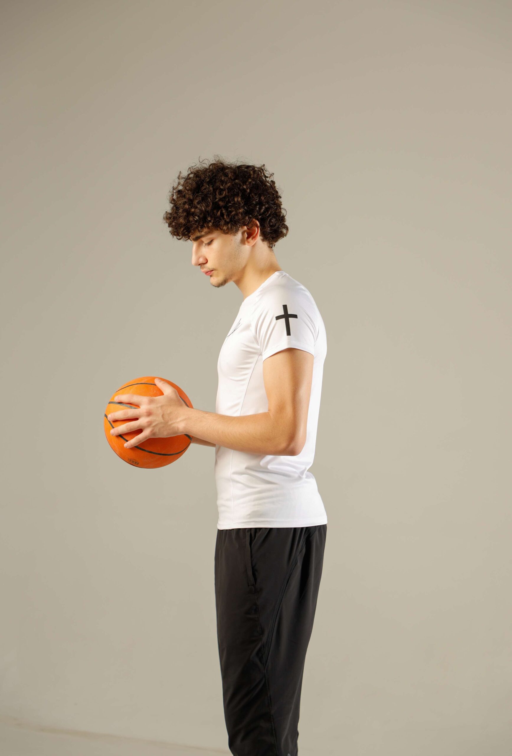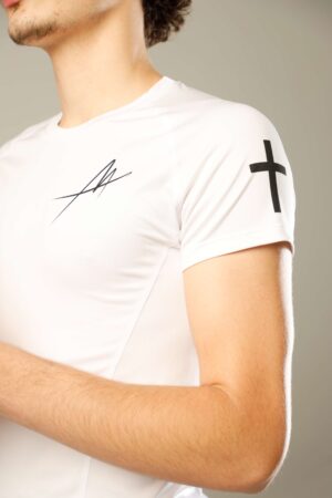 White compression shirt by Gyle: snug, supportive, and ready for the gym, errands, or downtime.