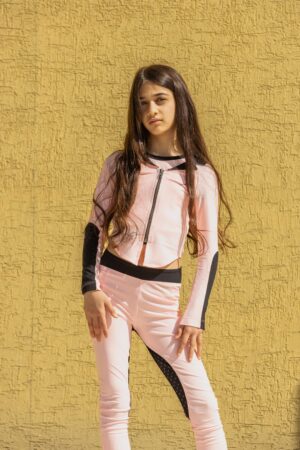 Pink riding leggings with black accents and pockets: stylish, comfy, and perfect for riding or everyday wear.