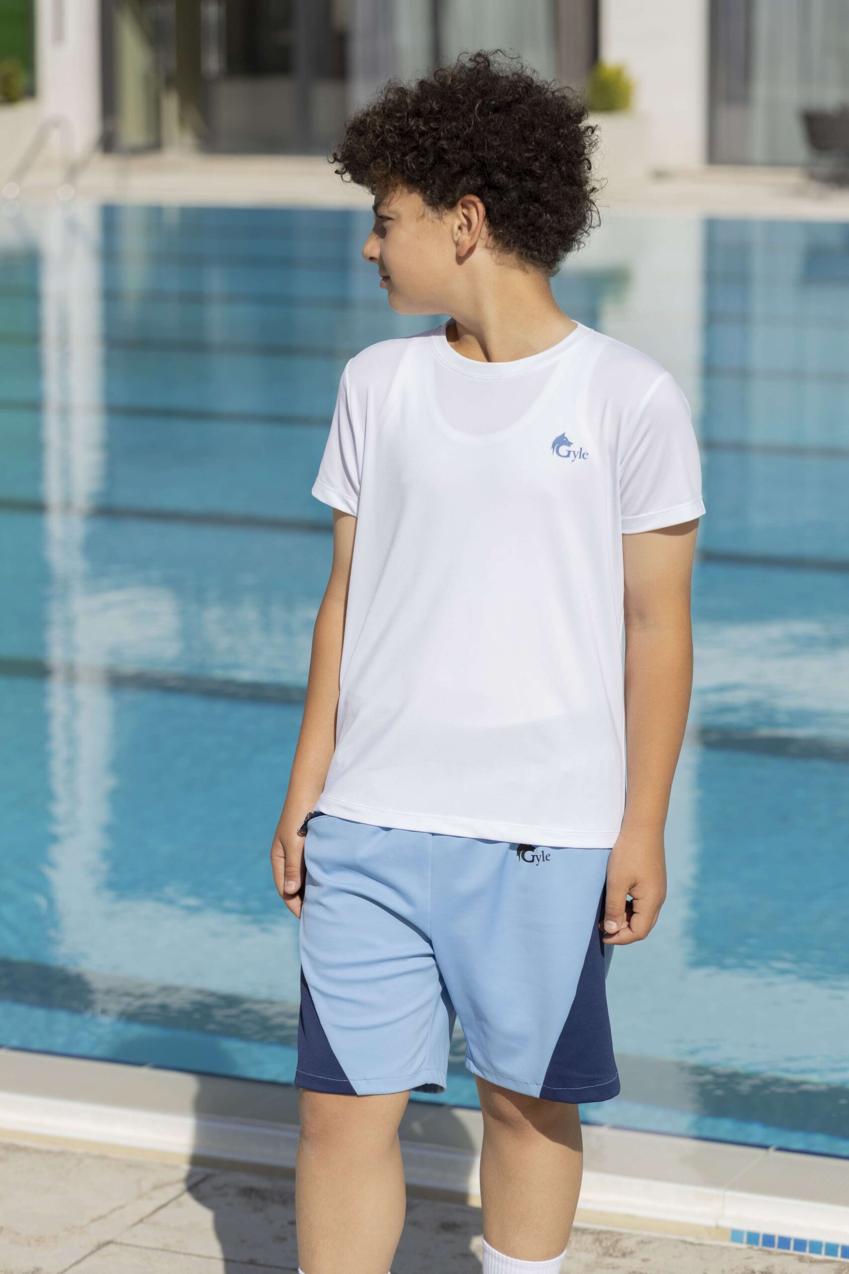 Light blue thermo athletic shorts with dark blue side panels and a small Gryle logo. Built for running, training, or just playing all day, these shorts feel light and move with you.