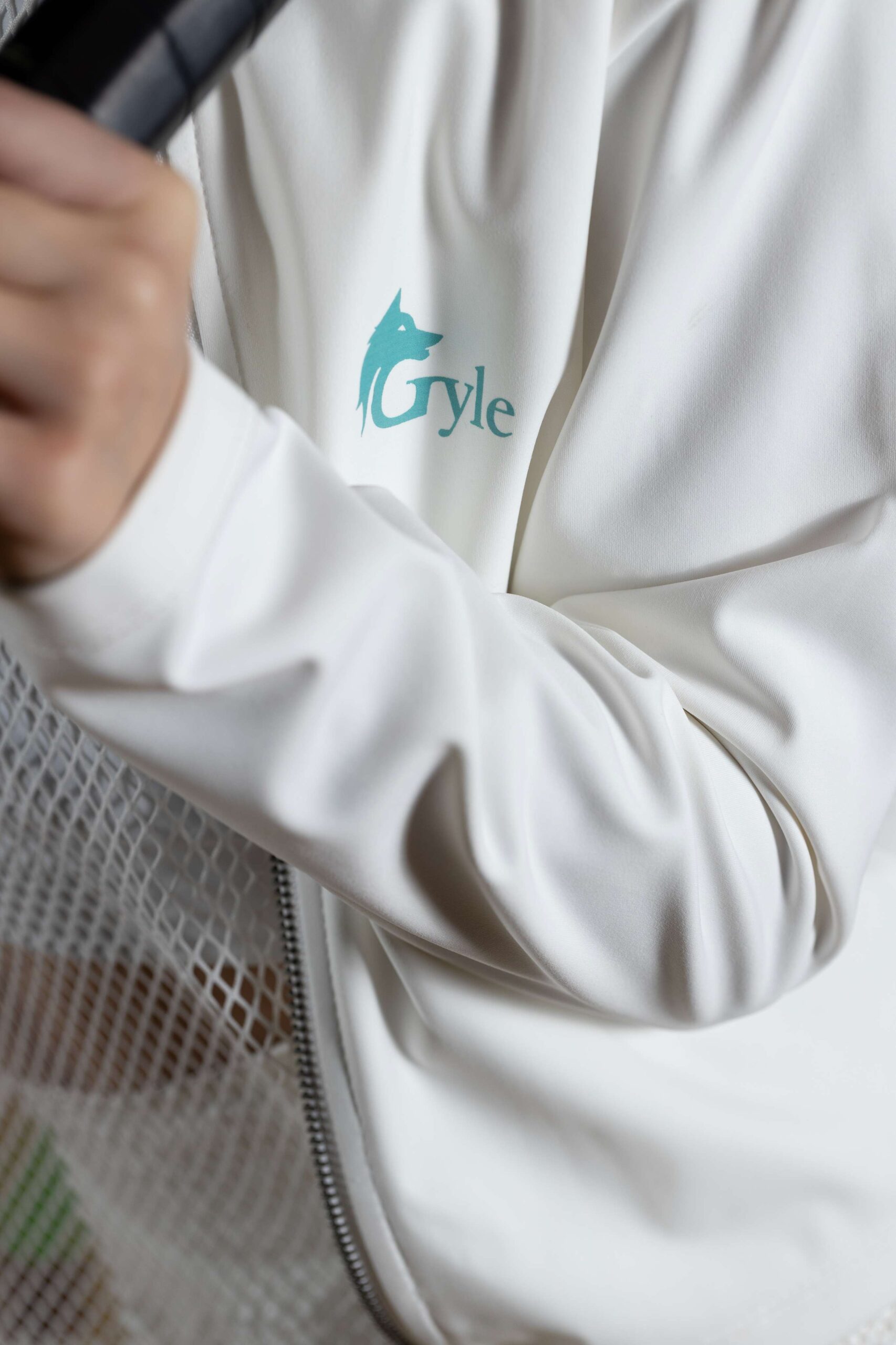Sleek and white, this full-zip jacket displays the Gyle logo on the chest and uses performance fabric to keep your child moving effortlessly.