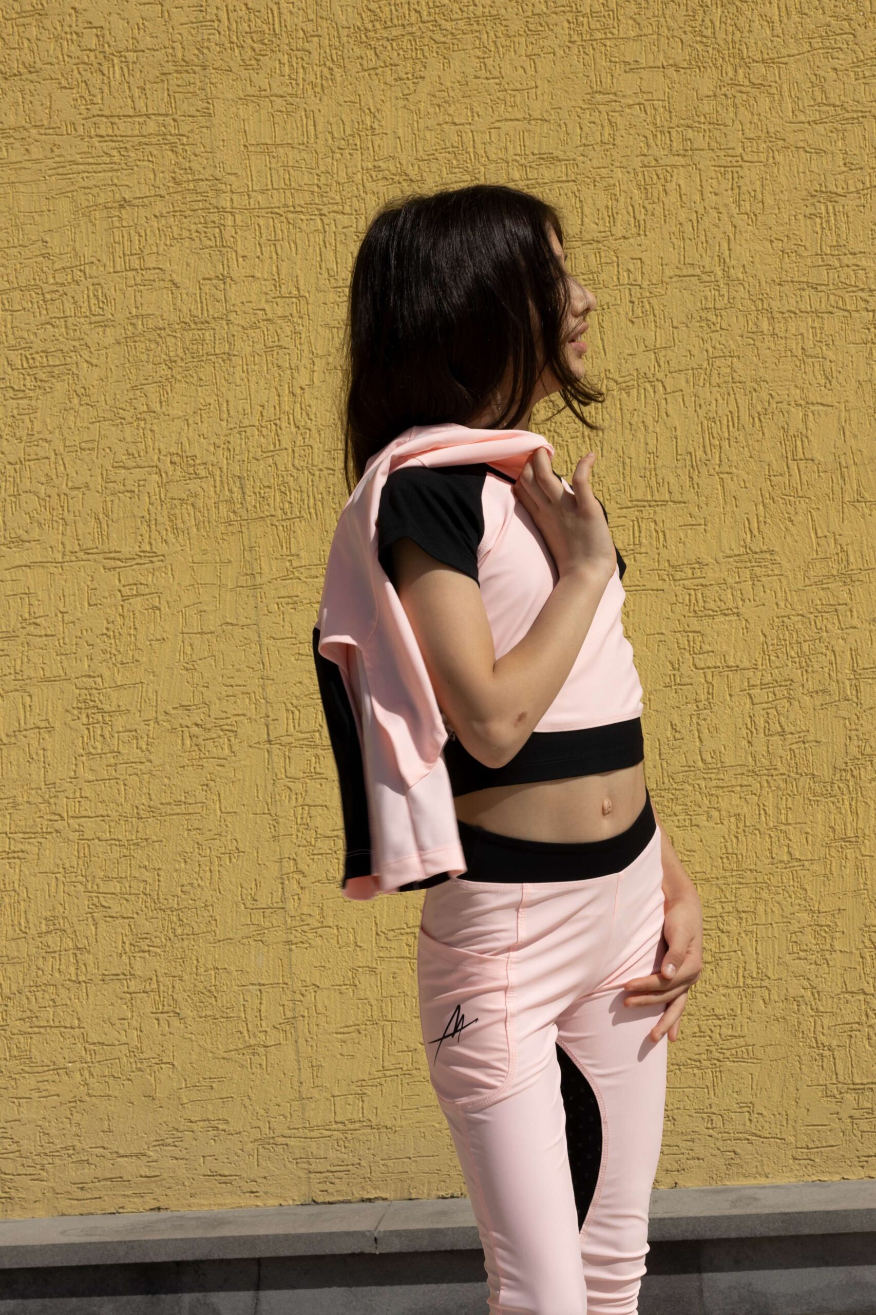 Pink riding top with black accents: sporty, cute, and perfect for everyday wear.